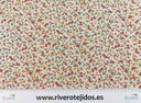 Tela de 100% algodón fondo de color blanco y flores pequeñas en tonos malvas. Es un tejido de tacto muy agradable y de fácil manejo muy aconsejable para principiantes, ideal para la confección de sábanas, trabajos de patchwork para combinar con estampados y lisos o para confección infantil.